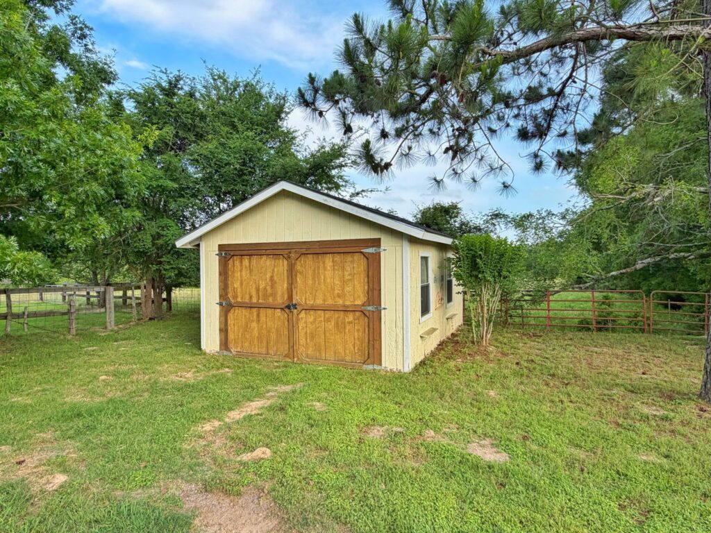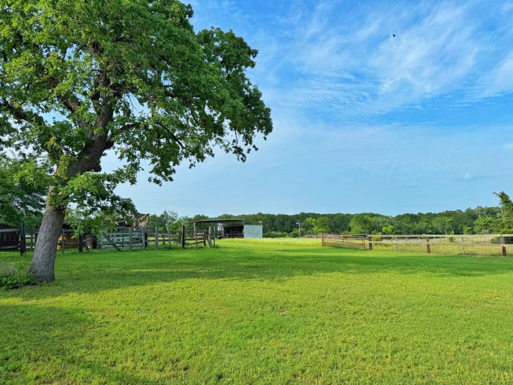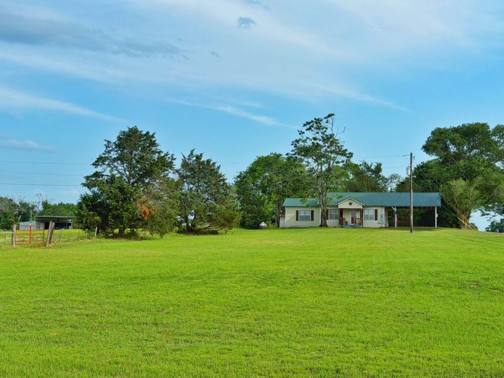 This beautiful 25-acre tract in Leon County offers the kind of rural lifestyle that is getting harder and harder to find. With paved frontage on FM 977 and additional frontage on CR 408, the property is easily accessible with multiple points of entry. The land is roughly 60% open pasture and 40% timber, creating a natural balance that is equally well-suited for grazing livestock, chasing whitetail, or simply unwinding on a quiet piece of East Texas countryside. The charming main farmhouse comes in just under 1,000 sq ft and features one bedroom and one full bathroom — cozy, functional, and full of country character. The bunkhouse is a standout in its own right, offering two bedrooms, one bathroom, a kitchenette, and a screened-in porch where you can sip your morning coffee and take in the sights and sounds of the land. Additional improvements include a tack room with two horse stalls and a covered overhang, two storage buildings, and several old barns that speak to the property's rich working history. The land is fenced and cross-fenced, ready for whatever livestock operation you have in mind, and a peaceful pond sits on the property providing a reliable water source for both livestock and the abundant local wildlife. Come spring, a well-established patch of bluebonnets bursts into bloom, giving this already stunning property a truly quintessential Texas finishing touch. Whether you're looking for a full-time homestead, a weekend hunting retreat, or a place to run a small livestock operation, this one has everything you need and then some.